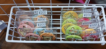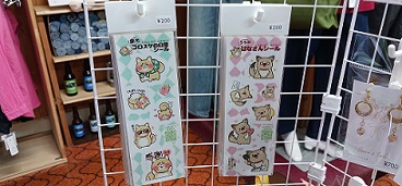 彼女が書いたキャラクターの犬「コロスケ」と「はなさん」シールなどオリジナル手作り品が当店にやってきました。。。